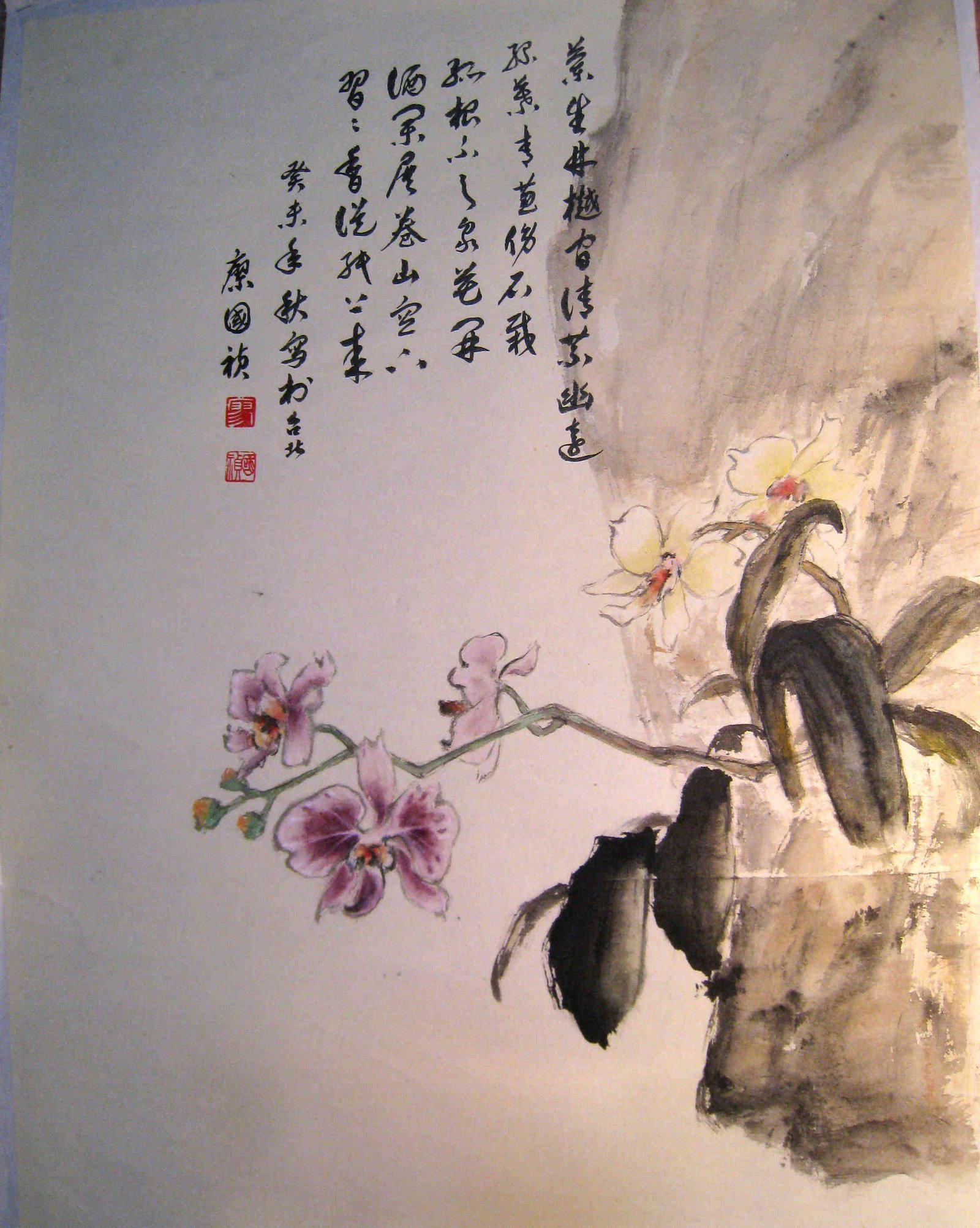 I022 廖國禎---蘭花與岩石 67.5cm x129.5cm