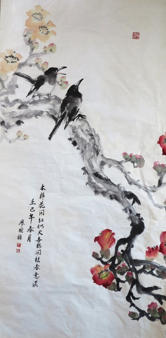 I035 廖國禎---木棉花舆喜鵲 69x135cm