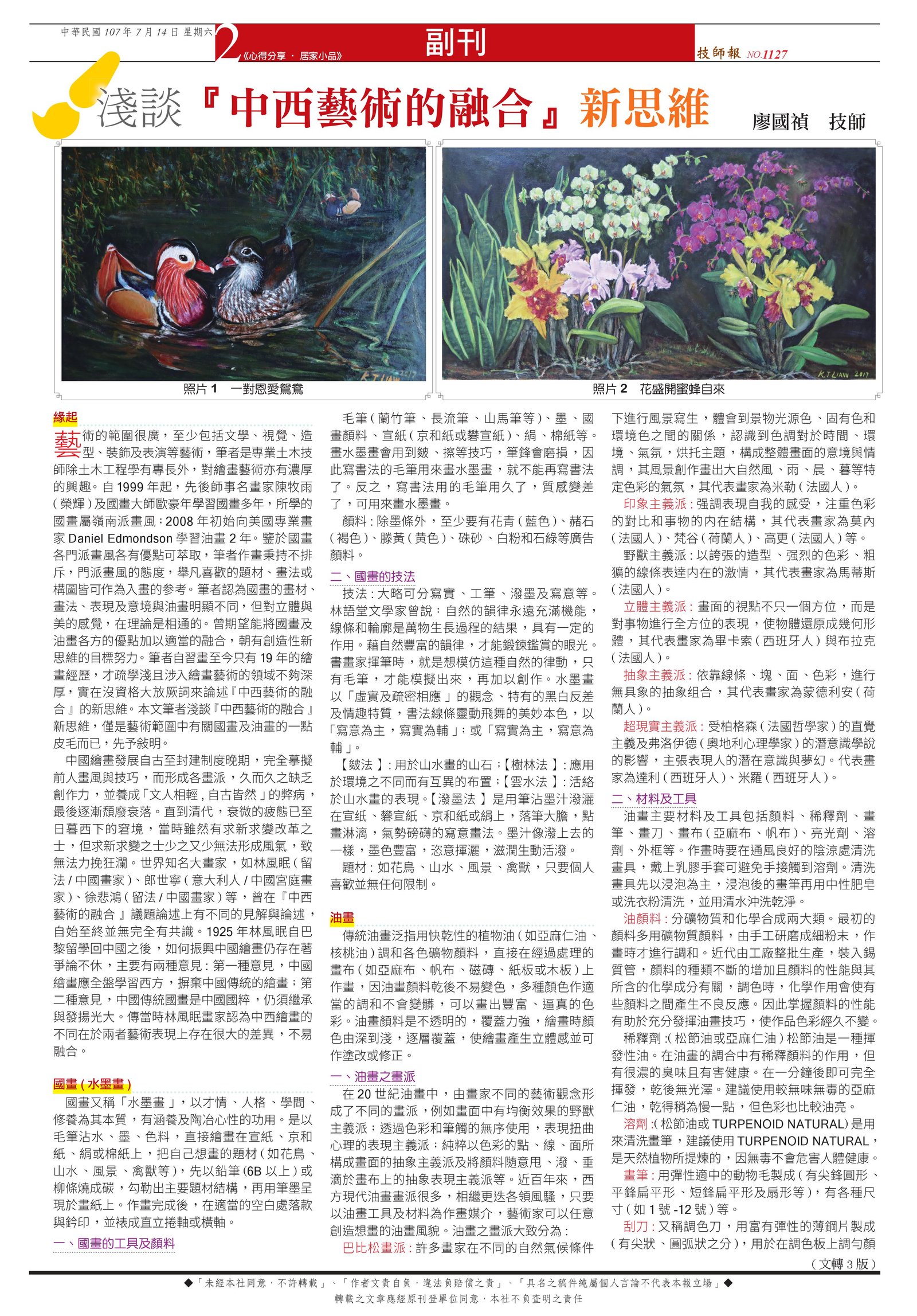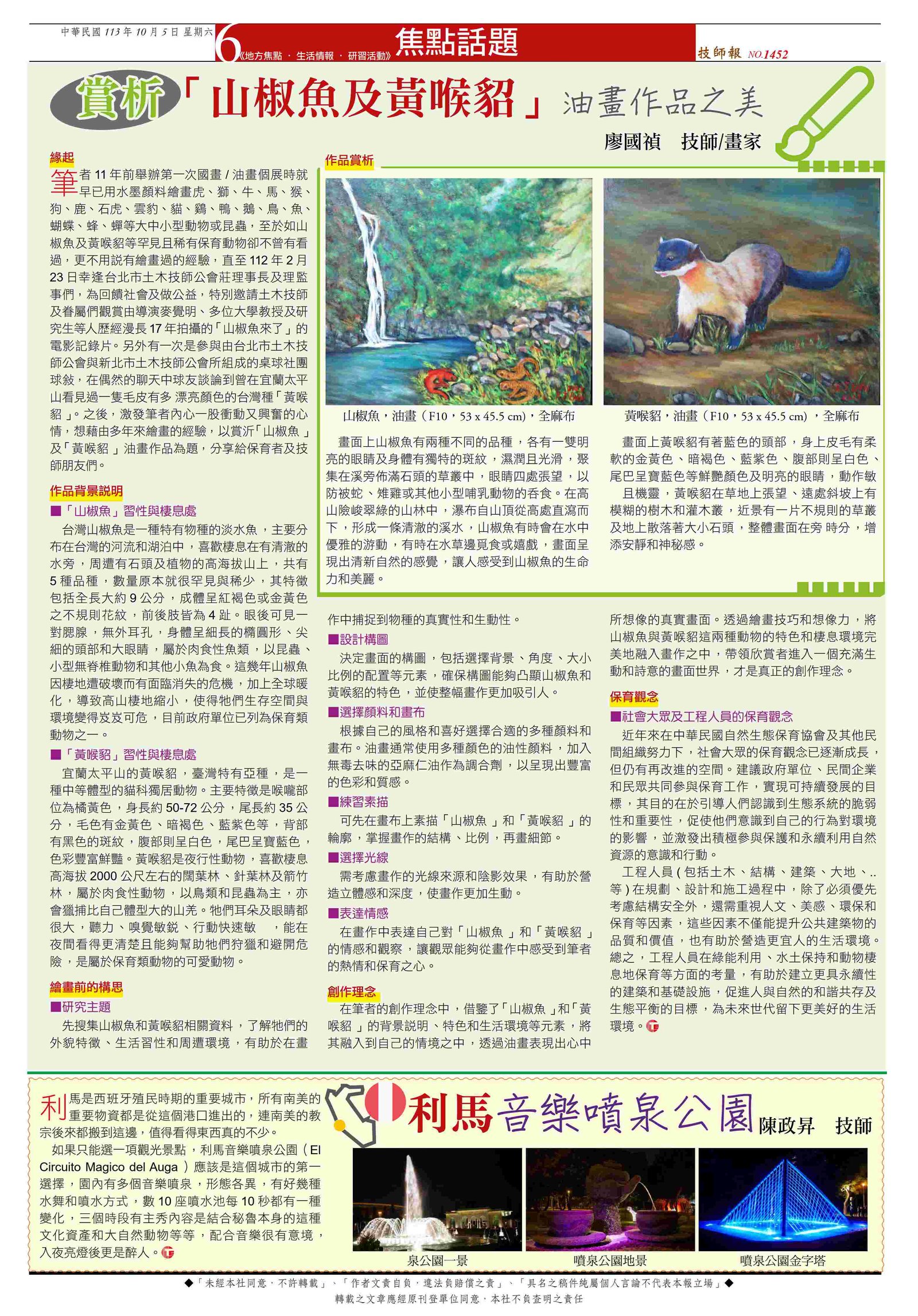 我對守(手)護臺灣油畫作品創作的動機與理念,內容刊登於技師報第969期第8頁請點圖放大瀏覽觀看