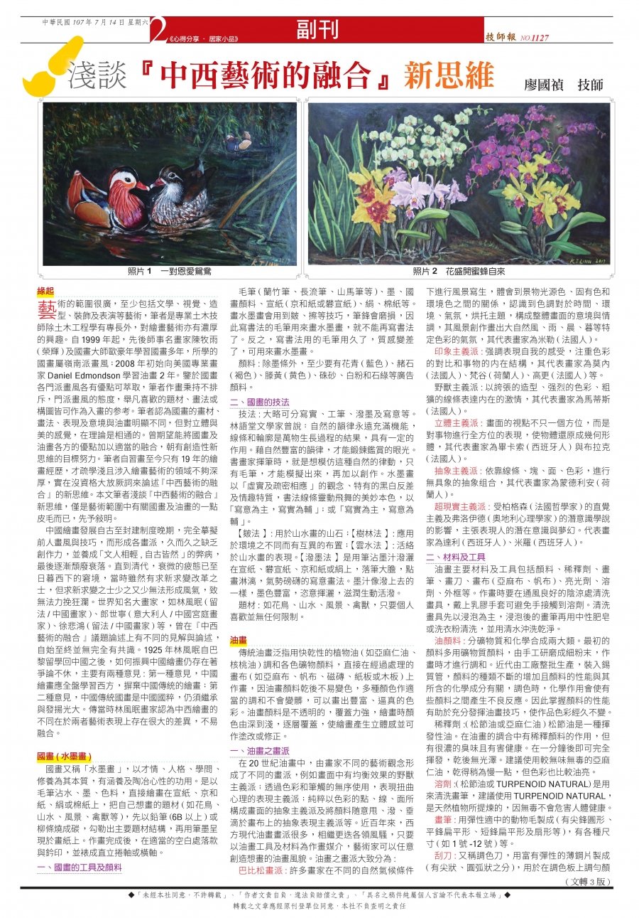 技師報第1127期,淺談「中西藝術的融合」新思維